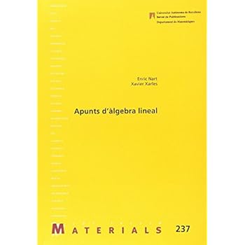 Reseña del editor En aquesta obra es fa una presentació clara i directa de les tècniques més bàsiques d'àlgebra lineal. Amb un llenguatge especialment adreçat als estudiants, s'introdueixen els conceptes d'una manera planera, posant l'èmfasi en els aspectes més funcionals i instrumentals de les tècniques lineals. En una primera part es practiquen diferents tècniques de manipulació de matrius, que constitueixen el fonament bàsic del curs. En una segona part, més abstracta, s'estudien els espais vectorials i les aplicacions lineals, que són els conceptes que millor modelitzen els fenòmens lineals. El text acaba utilitzant aquesta maquinària abstracta per obtenir tècniques de diagonalització de matrius, d'ús freqüent en molts processos científics i tecnològics. Les notes incorporen una extensa col·lecció de problemes proposats i la resolució completament desenvolupada de diversos exercicisTapa blanda=134 páginas. Editor=Servei de Publicacions de la Universitat Autònoma de Barcelona; Edición: 1 (15 de octubre de 2016). Colección=Materials. Idioma=Catalán. ISBN-10=8449066328. ISBN-13=978-8449066320. Valoración media de los clientes=Sé el primero en opinar sobre este producto. Clasificación en los más vendidos de AmazonTeoría matemáticaLibros en catalán=nº150.012 en Libros (Ver el Top 100 en Libros) .zg_hrsr { margin: 0; padding: 0; list-style-type: none; } .zg_hrsr_item { margin: 0 0 0 10px; } .zg_hrsr_rank { display: inline-block; width: 80px; text-align: right; } n.° 48 en Libros > Ciencias, tecnología y medicina > Matemáticas > n.° 8789 en Libros >.