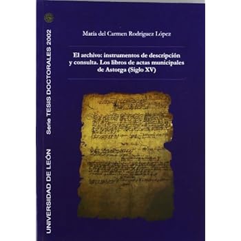 RODRIGUEZ LOPEZ, M. C. EL ARCHIVO: INSTRUMENTOS DE DESCRIPCION Y CONSULTA. LOS LIBROS DE ACTAS MUNICIPALES DE ASTORGA (SIGLO XV). LEON, 2006, 483 p.,. Encuadernacion original. Nuevo.Tapa blanda=483 páginas. Editor=Publicaciones Universidad de León; Edición: 1 (1 de marzo de 2006). Colección=Tesis doctorales 2002. Idioma=Español. ISBN-10=8497732502. ISBN-13=978-8497732505. Valoración media de los clientes=Sé el primero en opinar sobre este producto. Clasificación en los más vendidos de AmazonBiblioteconomía y ciencia de la informaciónHumanidades=nº76.702 en Libros (Ver el Top 100 en Libros) .zg_hrsr { margin: 0; padding: 0; list-style-type: none; } .zg_hrsr_item { margin: 0 0 0 10px; } .zg_hrsr_rank { display: inline-block; width: 80px; text-align: right; } n.° 22 en Libros > Consulta > n.° 6114 en Libros > Libros universitarios y de estudios superiores >.